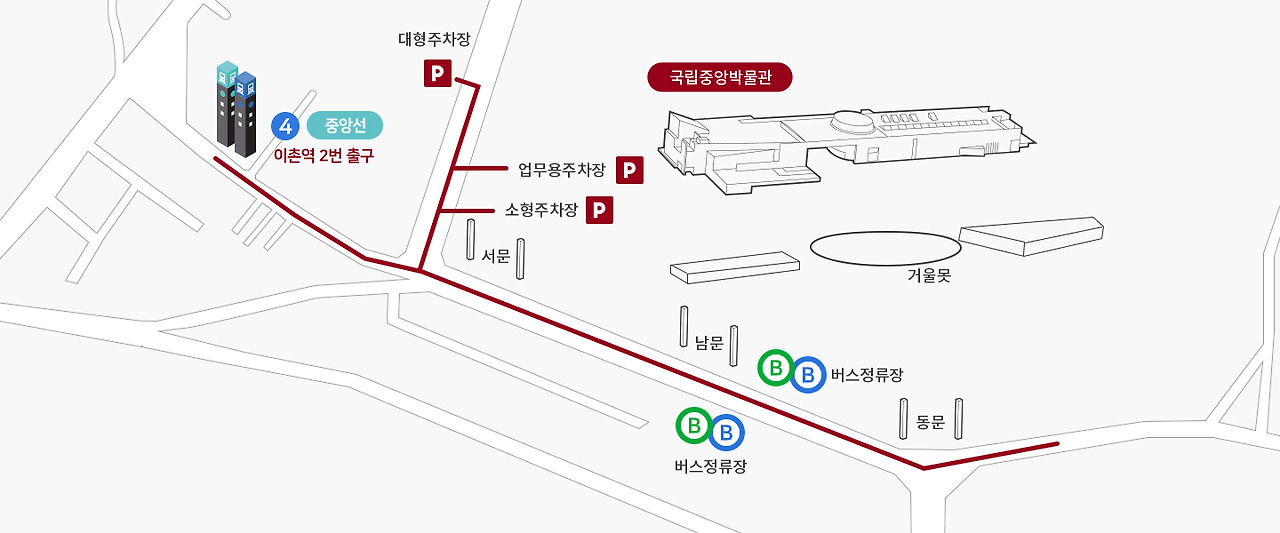• 502๋ฒ : ์ด์๊ต - ์๋น๊ณ ์ญ - [*๊ตญ๋ฆฝ์ค์๋ฐ๋ฌผ๊ด, ์ฉ์ฐ๊ฐ์กฑ๊ณต์*] - ์ด์ด์ญ - ์ฉ์ฐ์ธ๋ฌด์ - ์ฉ์ฐ๊ณต๊ณ