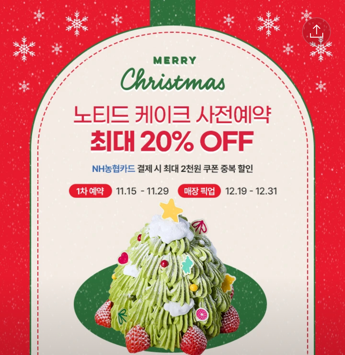 ๋ ธํฐ๋ ํฌ๋ฆฌ์ค๋ง์ค ์ผ ์ดํฌ 1์ฐจ ์ฌ์ ์์ฝ ํ์ ์ต๋ 20% ํ ์ธ!
